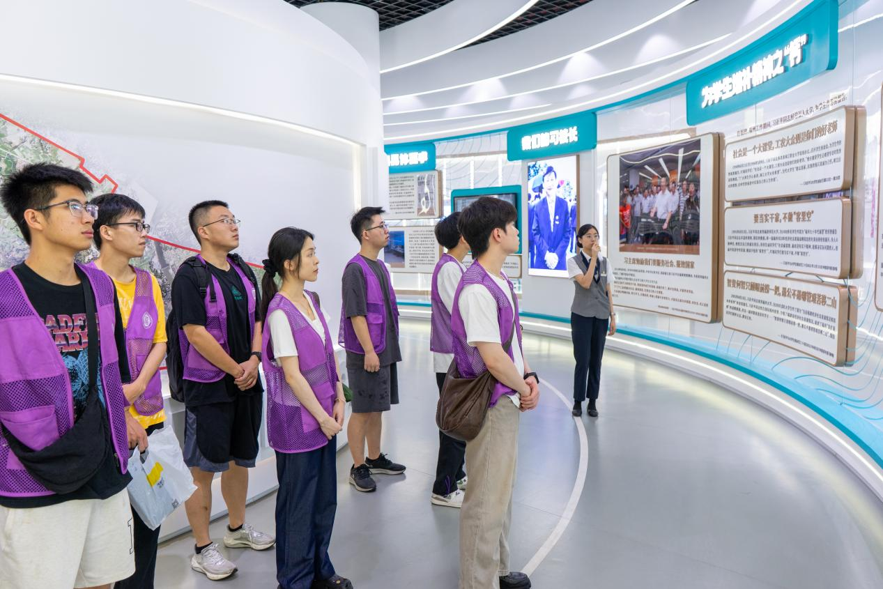 城文化艺术中心,参观“福州地区大学城建设历程展”。展览以“年轮”为设计理念,通过“亲自擘画”“亲切关怀”“殷殷嘱托”三大篇章,生动再现了大学城二十年从荒芜到繁荣的发展轨迹。一张张新老对比照片、一段段珍贵史料,让队员们仿佛穿越时空,切身感受教育发展的澎湃脉动。讲解中穿插的习近平总书记关心高校建设、关怀青年成长的动人故事,更让大家深受鼓舞,进一步坚定了珍惜韶华、奋发成才的信念。、