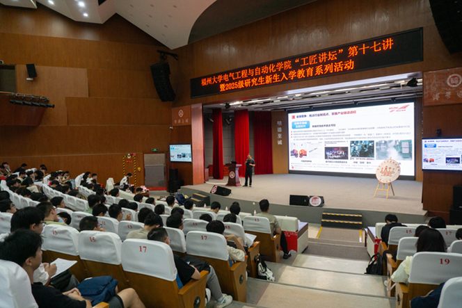 精心打造的“工匠讲坛”品牌活动也在9月16日迎来第十七讲,邀请到科华拓扑与控制技术总工易龙强先生。易总工从行业领军企业的视角,分享了电力电子领域的最新技术趋势与挑战,提出工匠精神不仅是个人核心竞争力的源泉,更是企业品牌壁垒和国家产业链话语权的根基,号召全体工程师以持续创新支撑“双碳”目标与全球数字经济,用千万次锤打铸就华夏伟业的不竭动力,成为数字化时代最可靠的基石。这场讲座有效拓展了学生的专业视野,架起了从课堂理论到产业实践的桥梁。