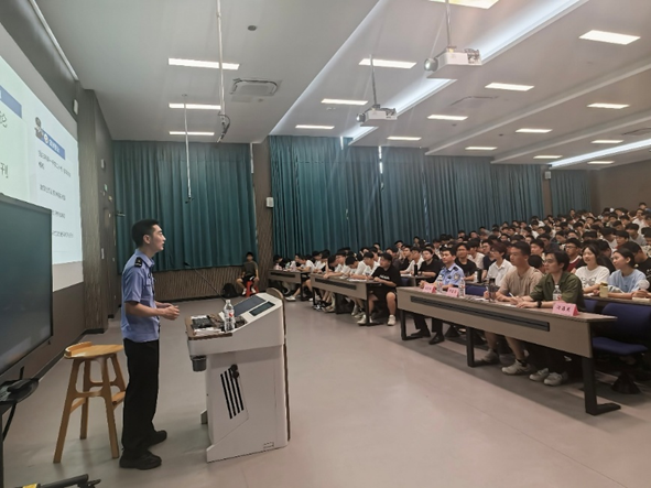 特邀怡山派出所许嘉豪警官为全体新生带来了一场深刻的反诈专题讲座。讲座现场座无虚席,许警官摒弃传统说教方式,从大学生熟悉的生活场景入手,如“游戏账号交易”、“刷单兼职”、“冒充导师或客服”等,结合近期高校内真实案例,逐层剖析各类诈骗手法。