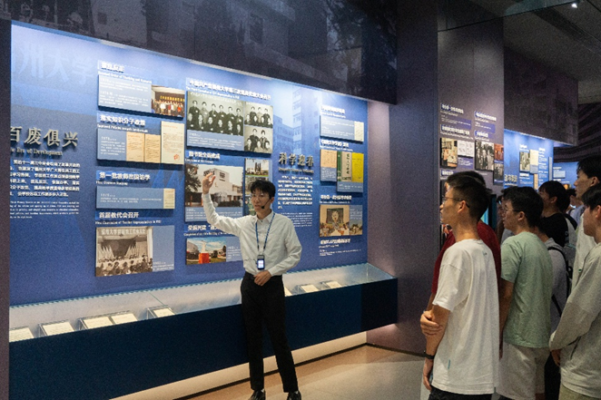 于9月17日组织全体2025级研究生新生参观了学校校史馆。在讲解员的引导下,通过大量珍贵的史料、历史照片和实物展品,同学门深入了解了学校自创办以来与民族共命运、与时代同奋进的发展历程。