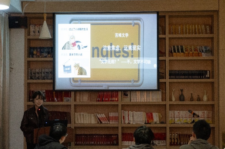 2024级法律(非法学)的张慧蓉同学作为分享人,围绕余华作品《兄弟》展开深度解读,以“一部荒诞时代的悲情史诗”为主题,聚焦“兄弟情仇与社会变迁”,带领书友们踏上了一段探寻荒诞时代悲情史诗的旅程。研究生辅导员许海燕老师参加了此次活动。 在分享人的引领下,我们首先快速回顾了这部五十万字巨著的核心脉络,一同探讨了余华的创作背景。从文革期间的苦难与温情,到改革开放后的欲望与裂变,李光头与宋钢这对异姓兄弟跌宕起伏的人生,如同一条引线,串起了中国社会四十年的沧桑巨变。