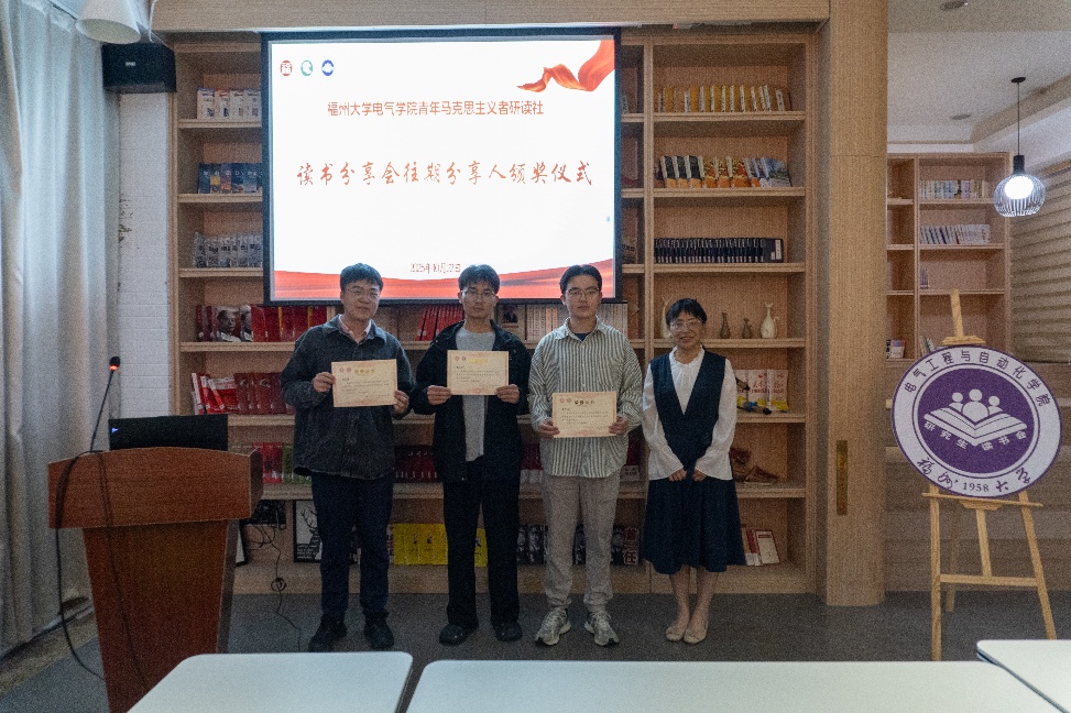 的研究生辅导员许海燕老师作为颁奖嘉宾,为往期优秀分享人颁发荣誉证书,感谢他们以专业的解读、饱满的热情搭建起思想交流的桥梁,用一本本好书点亮书香研途,为读书分享会的持续开展注入了温暖力量。