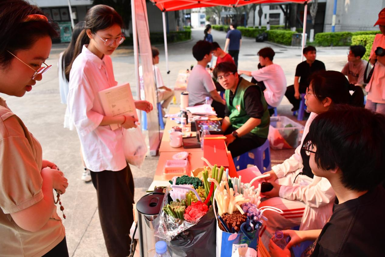 师生们踊跃参与,纷纷驻足摊位挑选心仪物品,以实际行动传递爱心力量,同学们捐赠的闲置物品也再次发挥它们的价值,每一件物品都被赋予了新的意义,承载着对需要关怀人群的深切关爱与美好祝愿。