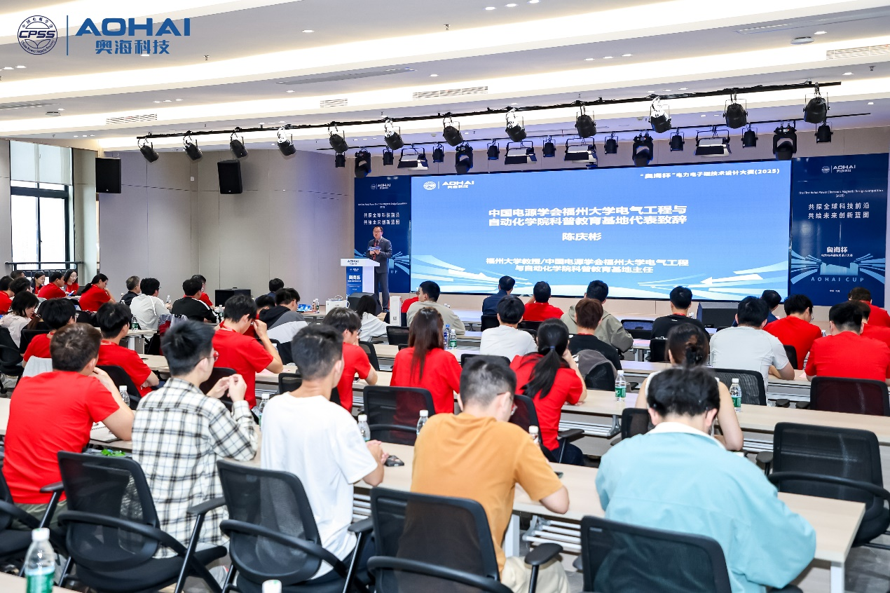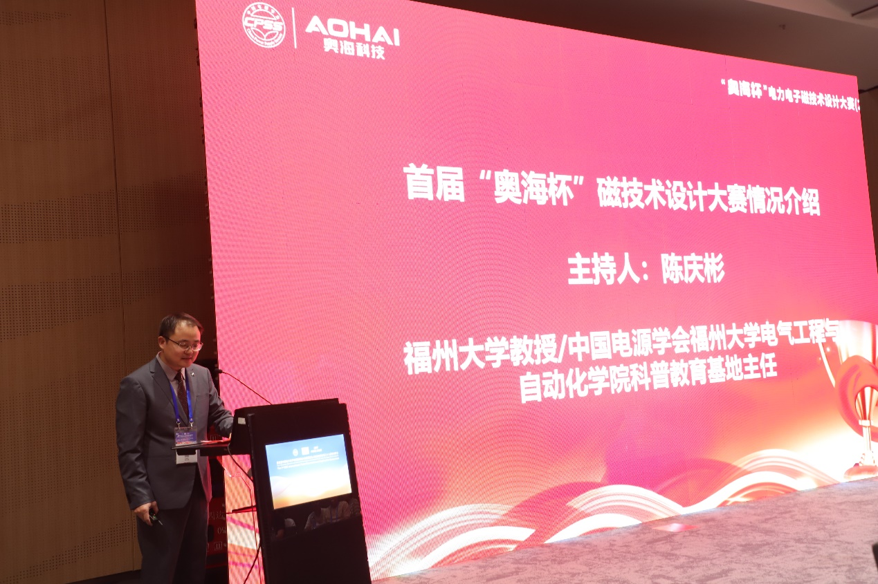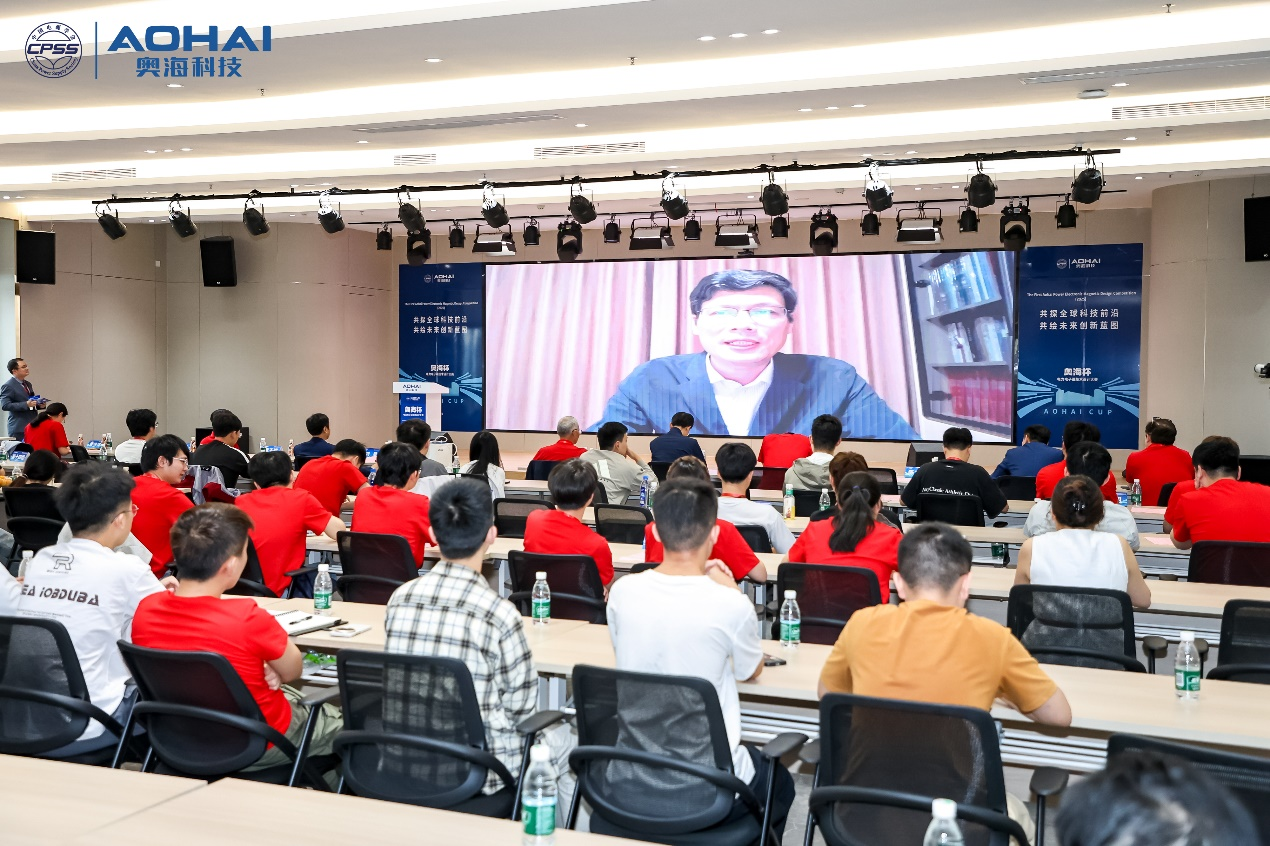 代表以视频的方式为本次会议致辞。邵院长指出:“本届“奥海杯”大赛的基础培训讲座吸引了近千人次参与,搭建了一个高质量竞技与成长的平台,是每一位参与者攻克技术难题的一次宝贵经历,期待各位同学能够在电力电子技术上实现更多的创新发展。”