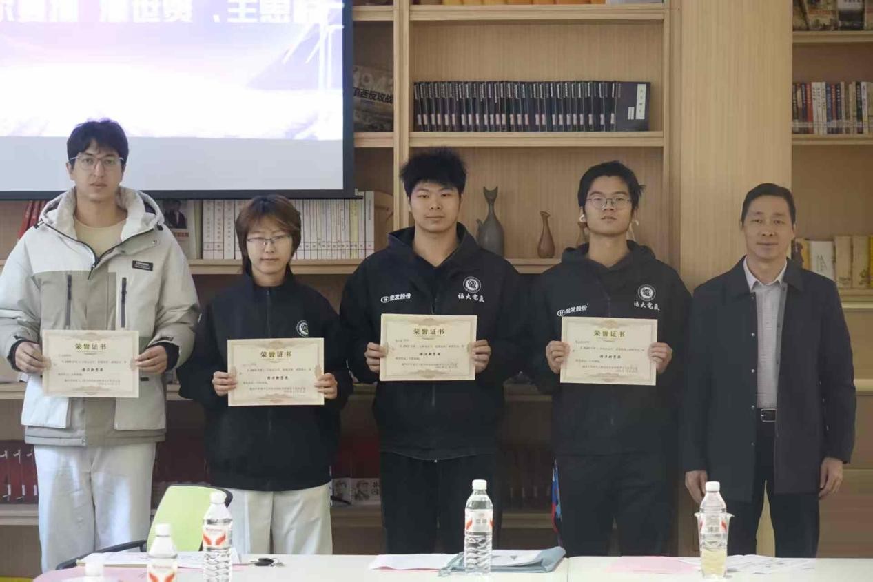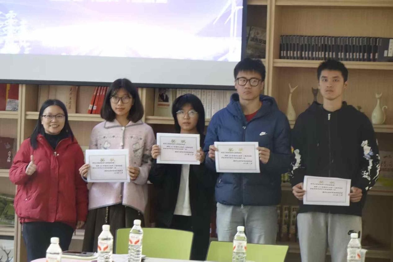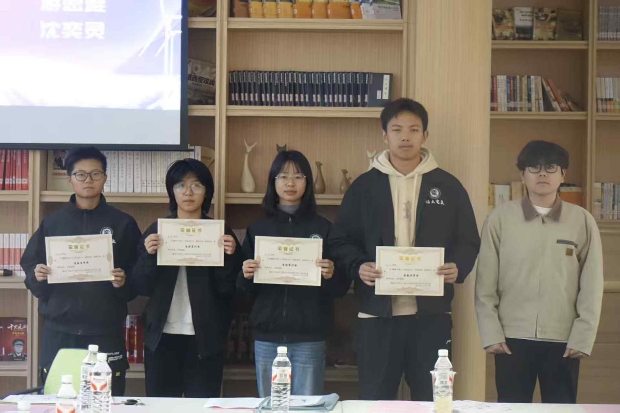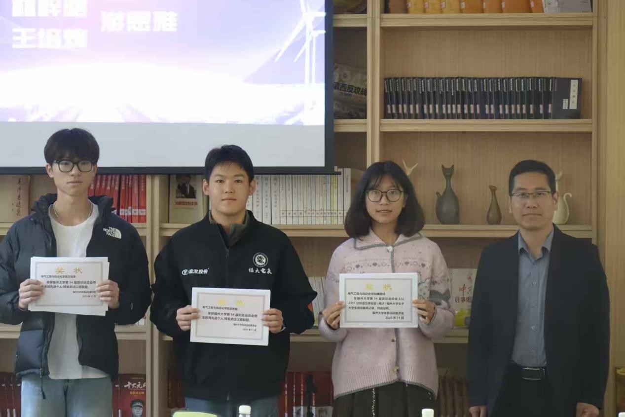 在青马研读社举行第54届校田径运动会表彰总结会。院党委书记潘志辉、院党委副书记杜领军、院团委副书记梁艳华、辅导员李剑峰老师和电气91色情