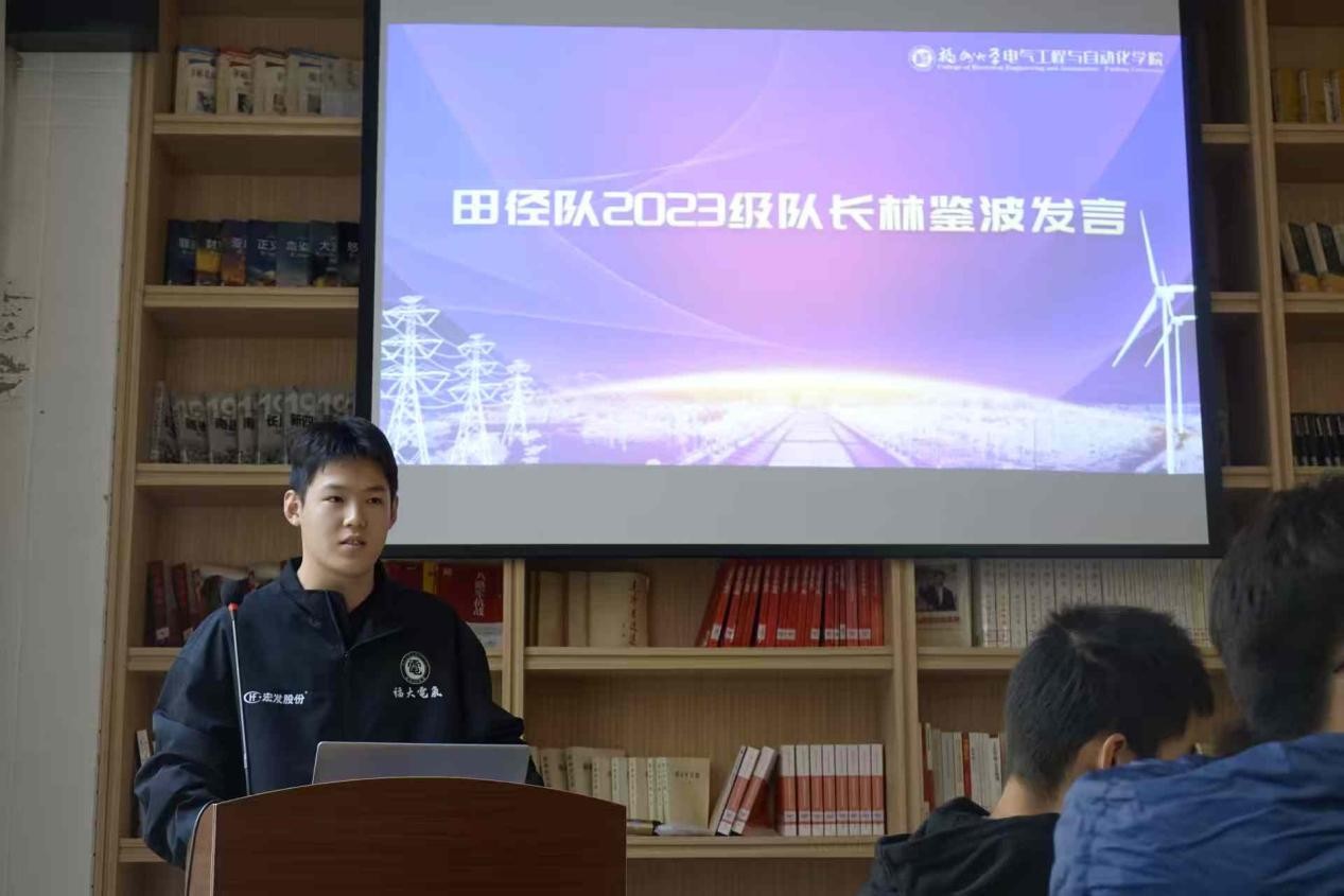 田径队2023级队长林鉴波首先表达了对共同带队的学长学姐的指引、全体队员在运动会备战和比赛期间的互相帮助和共同承担的感谢。他针对宣传、人员分配、活动组织等方面对此次运动会的困难与应对进行了分析,表示91色情