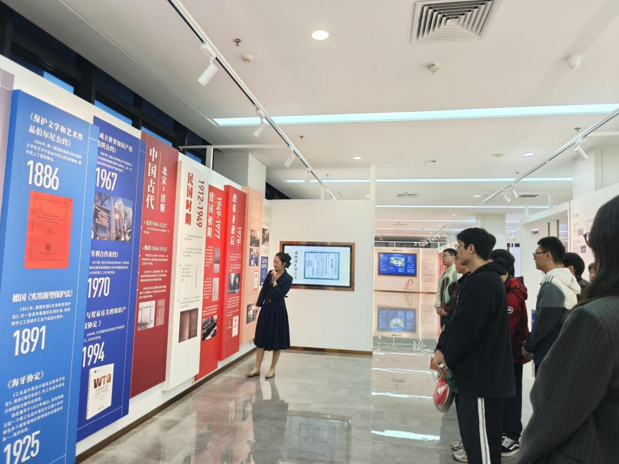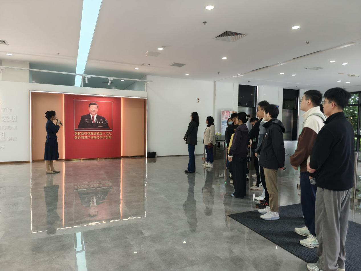在中心讲解员的引导下,支部党员们首先参观了知识产权科普展厅。大家通过丰富的图文资料,了解了专利制度从国外到国内的演进脉络,生动展现了我国在知识产权领域从起步、建设到跨越式发展的辉煌成就。支部党员们了解到,国家近年来持续推进知识产权强国建设,出台多项政策引导专利创造、运用与保护,为科技自立自强提供了坚实的制度保障。这一环节,让大家对知识产权作为国家战略性资源和竞争力核心要素,有了更加具象而深刻的理解。