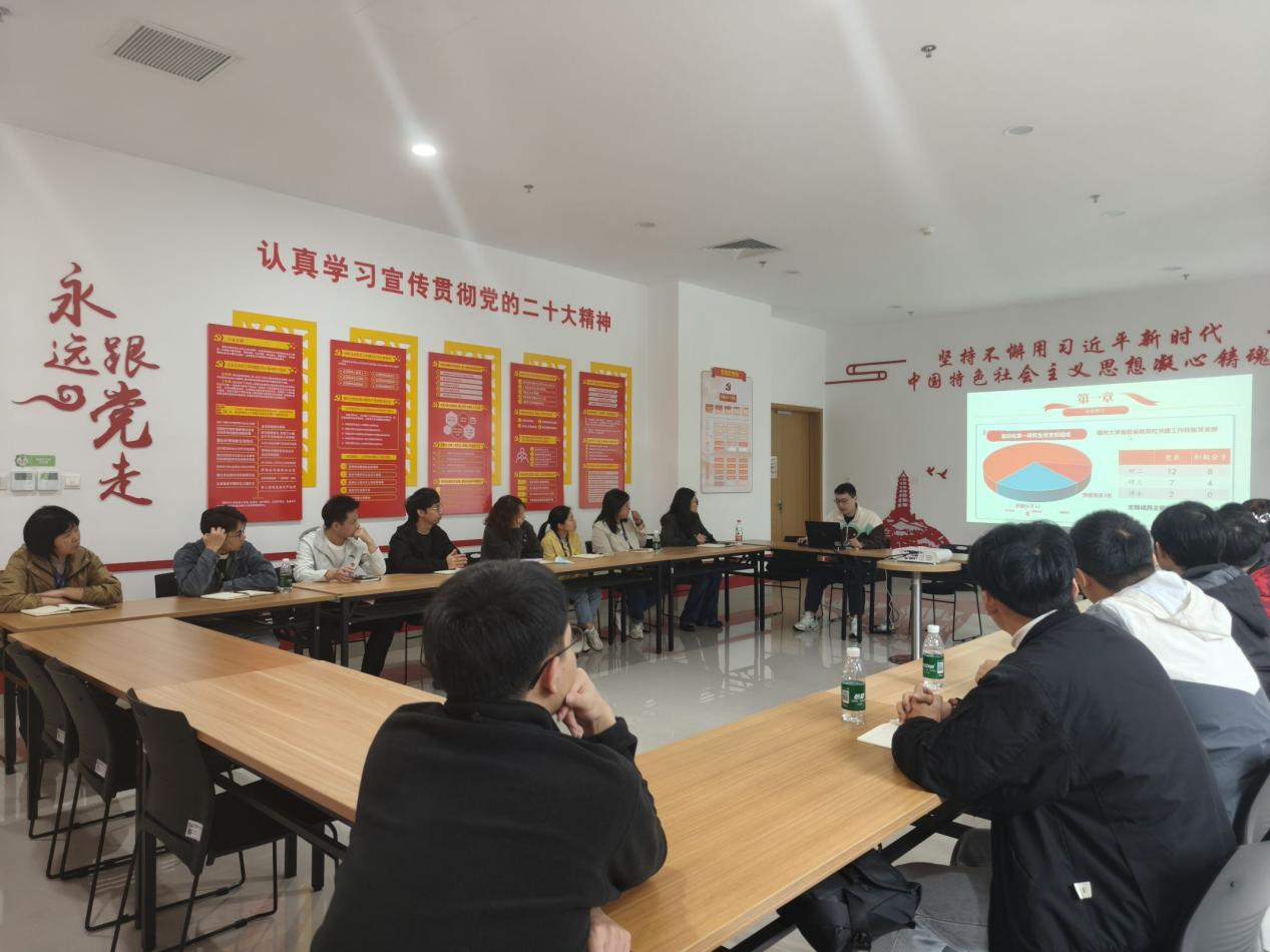 作为交流的一方,自动化第一研究生支部党员代表也向与会同志介绍了我支部在建设“服务型党支部”方面的探索与实践,重点分享了支部党员连续三年赴顺昌县开展科技支教、助力乡村振兴的经历与感悟,展现了福大电气学子将论文写在祖国大地上的青春担当。