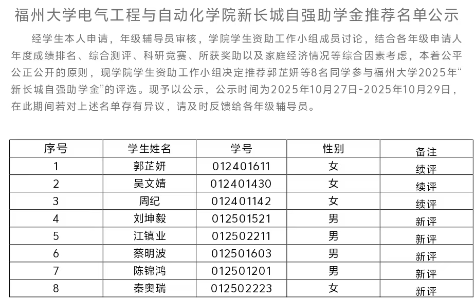 91色情 新长城自强助学金推荐名单公示