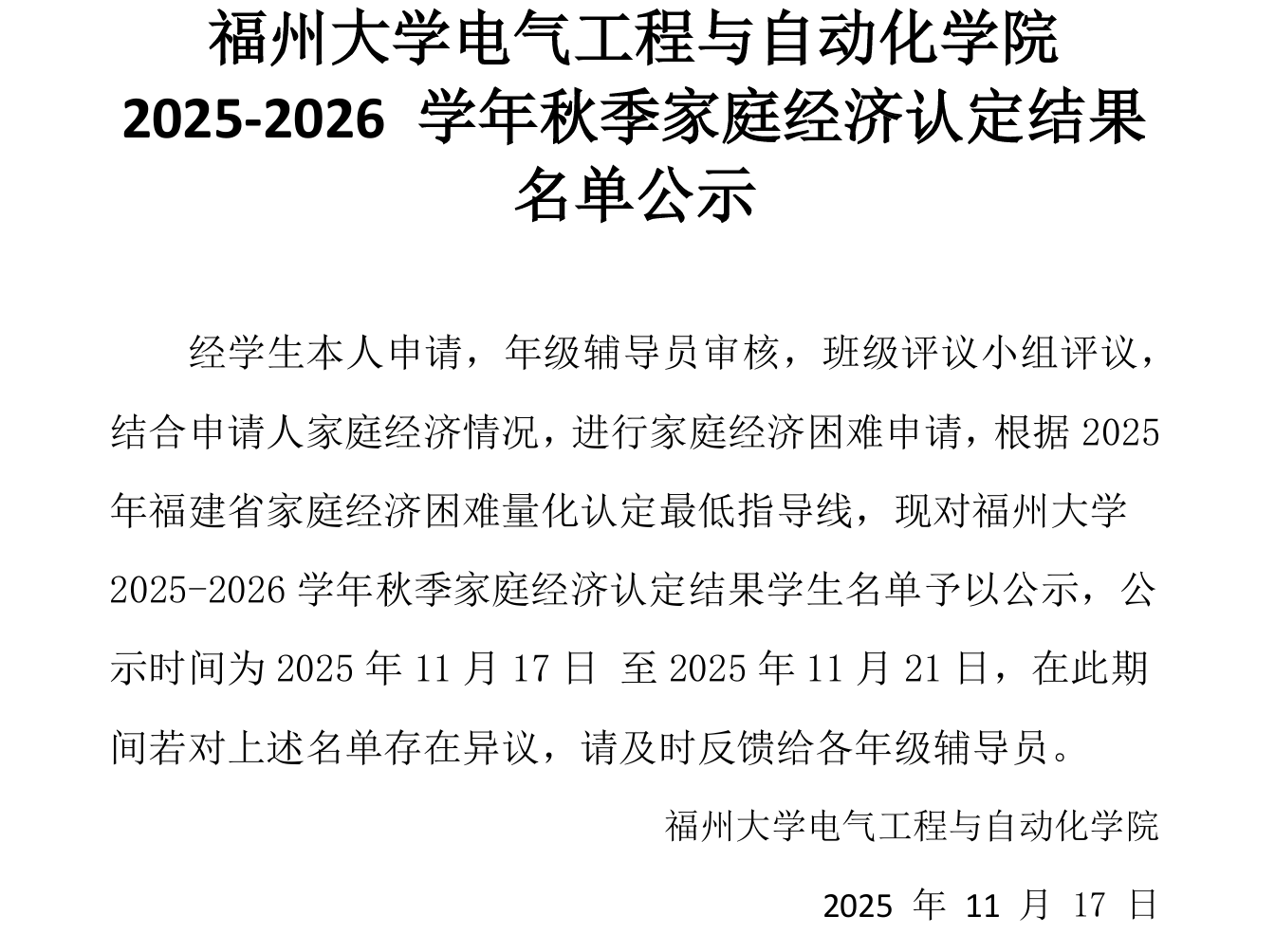 电气91色情 关于2025-2026学年本科生家庭经济困难学生认定领导小组成员及年级评议小组成员的公示